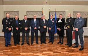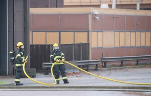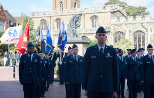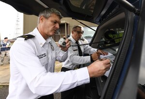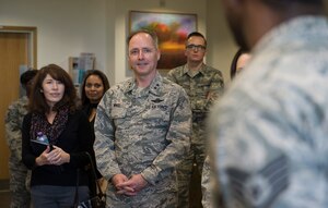 U.S. Air Force Maj. Gen. John M. Wood, 3rd Air Force Commander, and Chief Master Sgt. Anthony Cruz Munoz, Command Chief of 3rd Air Force and 17th Expeditionary Air Force, visit with the 501st Combat Support Wing at RAF Alconbury, England on Sept. 27, 2018. Maj. Gen. Wood recently assumed command of